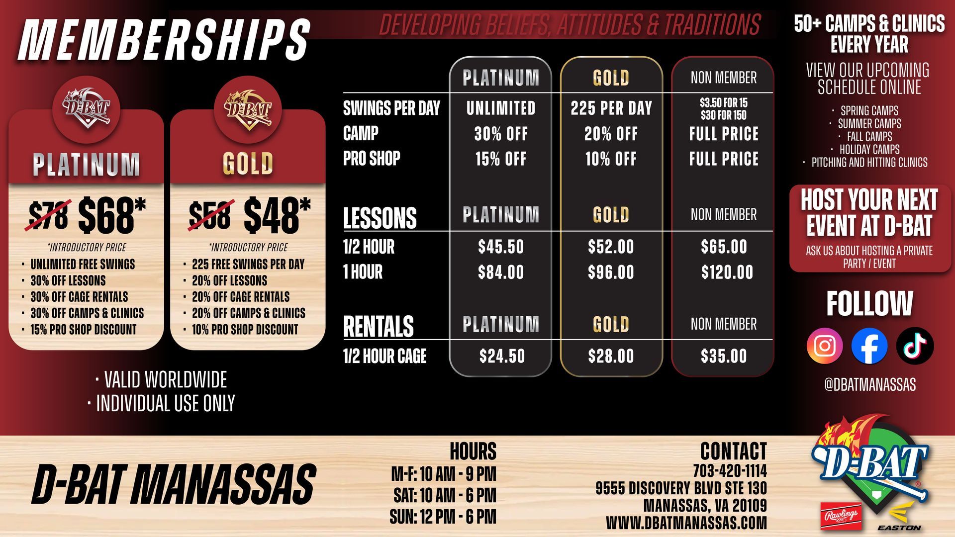 D-BAT MANASSAS PRICING